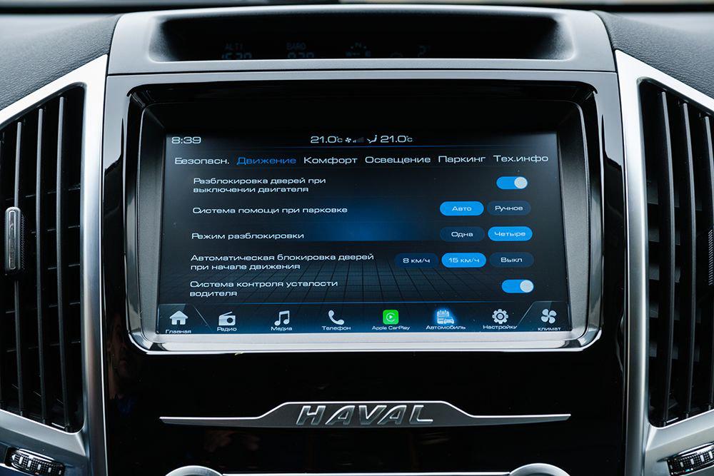 Новая мультимедийная установка, прописавшаяся в салоне Haval H9, порадовала четким откликом, быстродействием и отпугнула запутанностью меню. Разобраться можно, но интуитивной ее назвать не получится. По сути, все управление машиной завязано на этот дисплей и, в отличие от дорестайлинговой версии, пользоваться им стало удобнее. Выросло разрешение, до 9 дюймов, картинка с камеры заднего вида стала четче, появилась поддержка Apple CarPlay. С андроид-девайсами мультимедиа не дружит, как и большинство китайских машин.