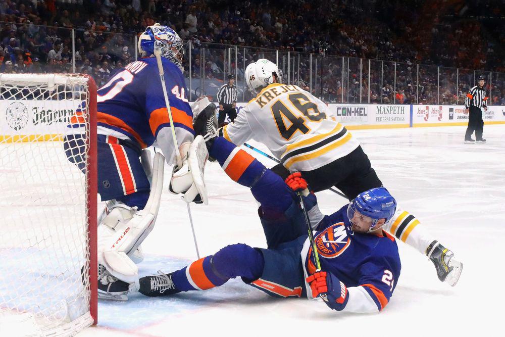 И они справились с задачей, переиграв "Бостон" со счетом 6:2. Две шайбы записал на свой счет Брок Нельсон, по разу отличились Трэвис Зейджак, Кайл Палмьери, Кэл Клаттербак и Райан Пулок. В составе "мишек" дважды отличился Брэд Маршан.