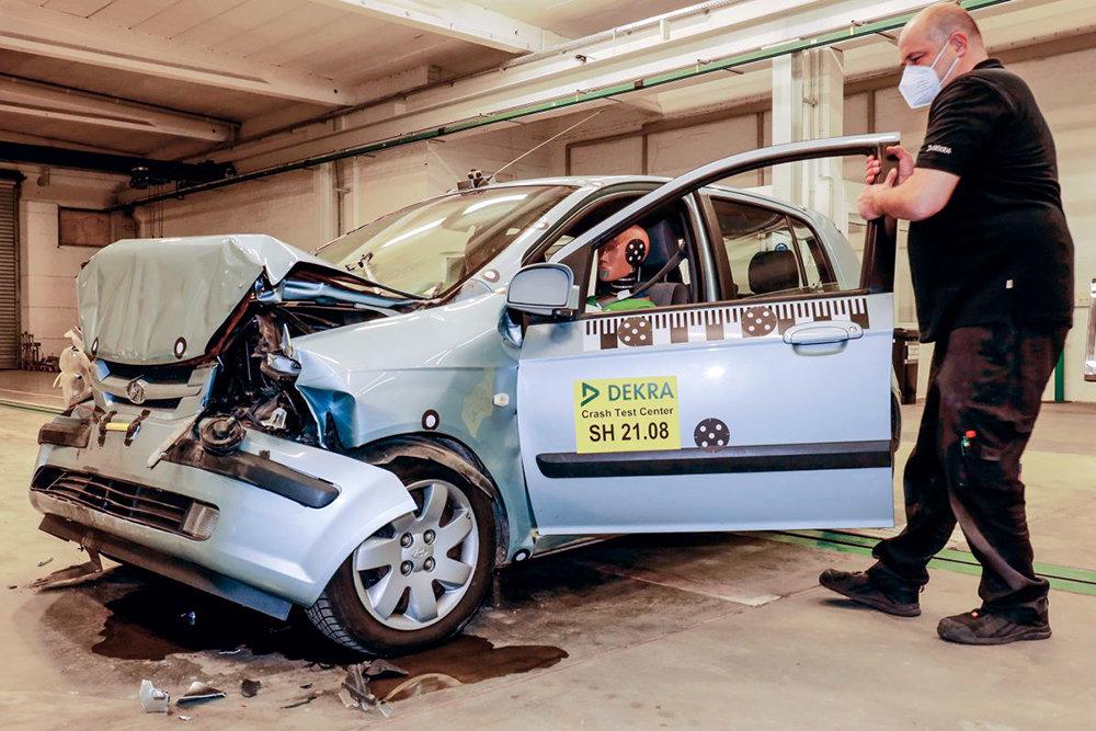 Hyundai Getz, который достиг по человеческим меркам совершеннолетия и намотал 270 000 км, вряд ли планировал закончить свой путь встречей с бетонной стеной, но организация Dekra в Ноймюнстере, Германия, поставила поиск истины выше сострадания к машине.