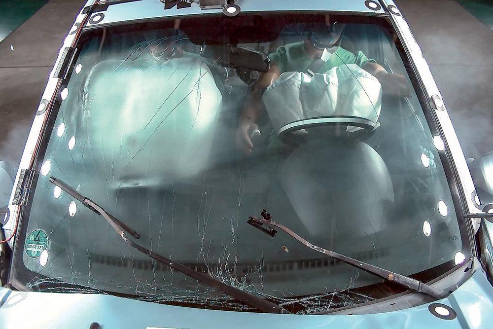 В ходе краш-теста - столкновение с бетонным барьером на скорости 50 км/ч - весь процесс срабатывания преднатяжителей и подушек занял 37.9 миллисекунд. Для сравнения, человек моргает со скоростью примерно 100 миллисекунд. Что же, весьма обнадеживающе. После столкновения не произошло сильной деформации каркаса, и открыть двери не составило труда, педальный узел, стойки лобового стекла - целые.