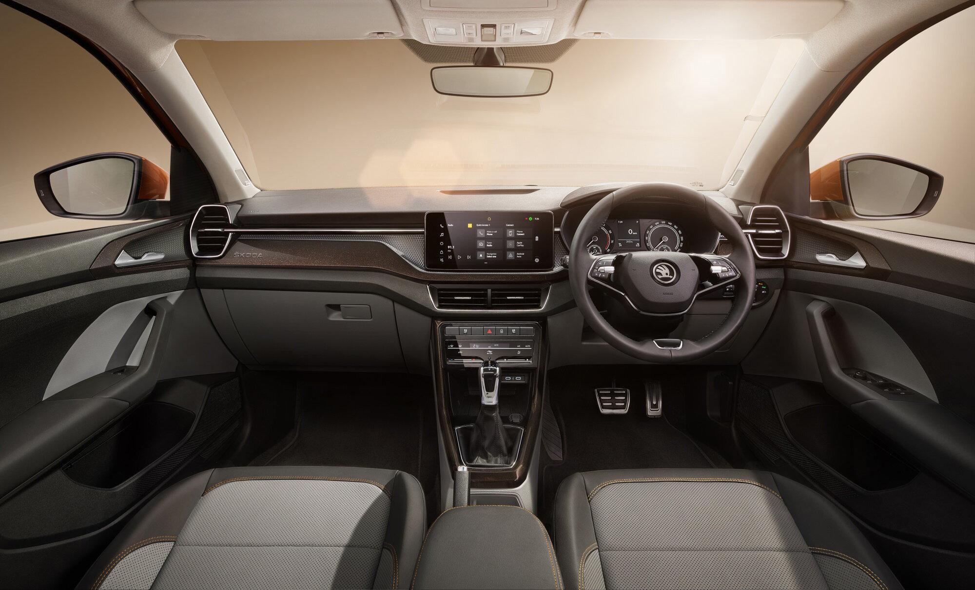 В дорогих комплектациях Skoda Kushaq имеет продвинутую мультимедиа с 10-дюймовым дисплеем, протоколами связи Apple Carplay и Android Auto и WiFi-роутером, передние сиденья с вентиляцией, климат-контроль сенсорным пультом и амбиентную подсветку интерьера.