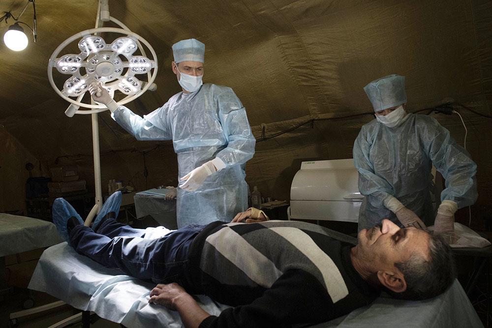 Возле местной больницы наши медики развернули пневмокаркасный модуль. В этом полевом медпункте устроили прием жителей поселка, которые нуждались в квалифицированной врачебной помощи. "У нас около 1600 человек населения вместе с детьми и стариками. Четыре врача: два терапевта, два педиатра. Вроде бы справляемся, но огромная потребность в узких специалистах, особенно не хватает офтальмолога и ЛОР-врача, просто катастрофически не хватает", - объяснил заведующий сельской участковой больницы Алек Макян.