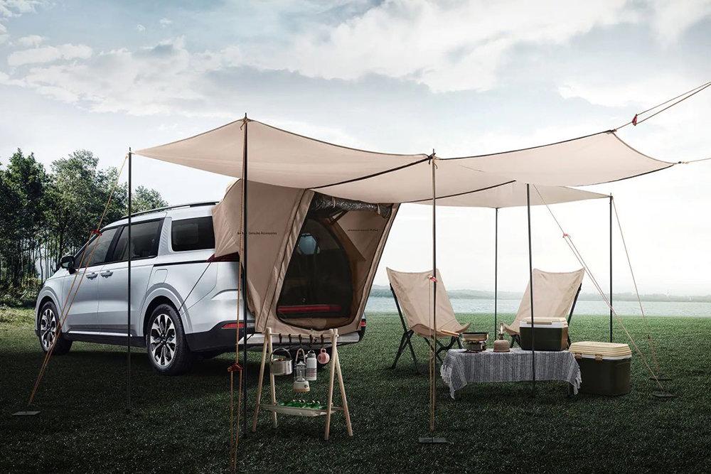 Вместе с Carnival HiLimousine представили кемпинговая версия Noblesse Outdoor со складывающимися сиденьями и палаткой-навесом.