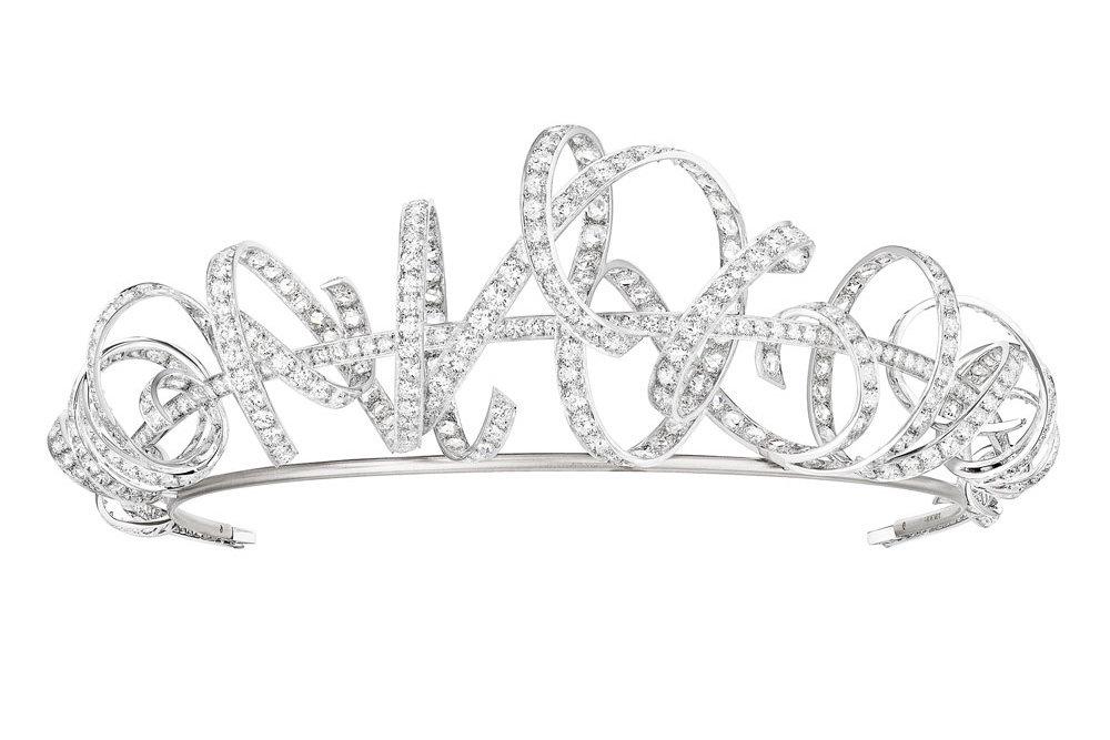 Изящная витая тиара с закругленными линиями, усыпанная бриллиантами - знаковое творение Chaumet. Виртуозно выполненная, она будто бросает вызов гравитации.