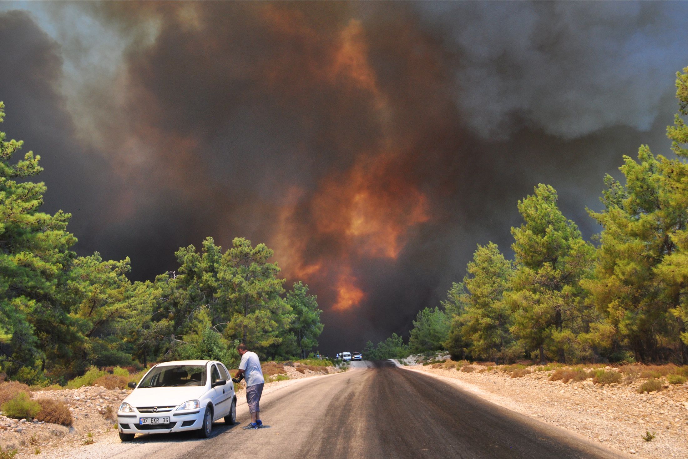 Некоторые очевидцы утверждают, что пожар уже добрался до шезлонгов на пляже, и постояльцев эвакуируют на катерах и судах добровольцев из числа местных жителей.