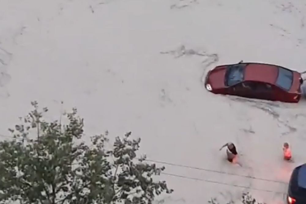 В Сети появились кадры с улиц, превратившихся в полноводные реки, по которым автомобили плавают как лодки.