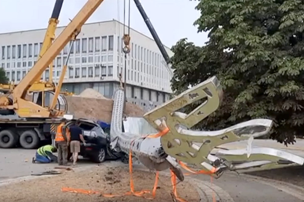 На Украине на машину упал флагшток за 22 миллиона рублей