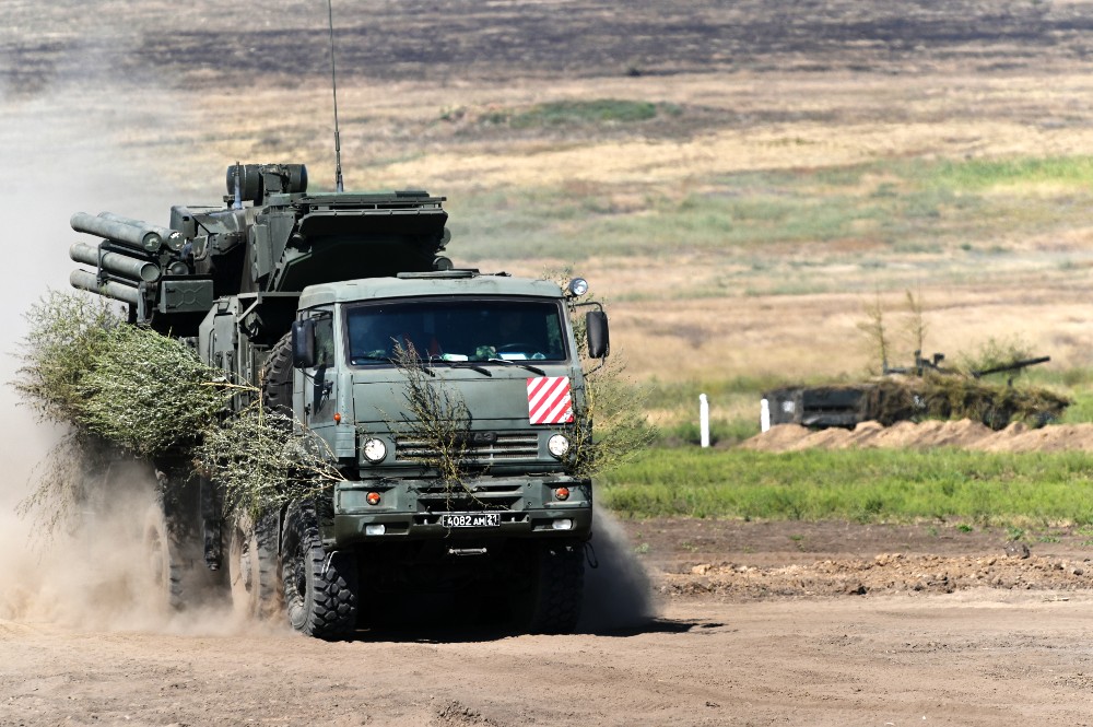 Расчеты противовоздушной обороны использовали зенитную ракетную систему "Фаворит" и ракетно-пушечный комплекс "Панцирь-С1" для отражения налета бомбардировщиков и беспилотной авиации условного противника на аэродроме Приволжский в Астраханской области.
