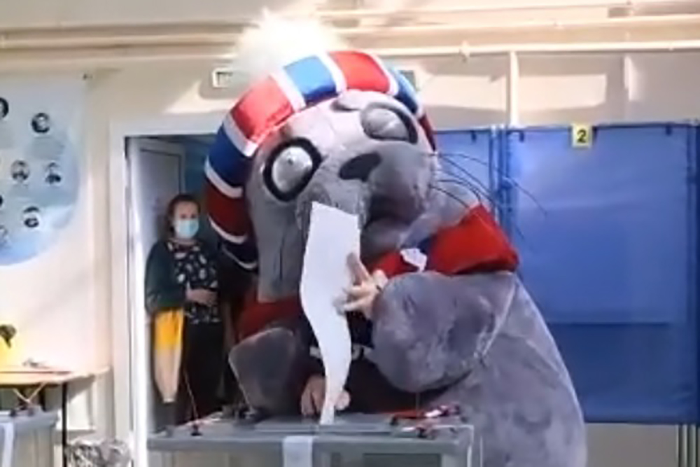 Избиратель в костюме байкальской нерпы пришел в последний день голосования на участок в центре города в Иркутске. По свидетельствам очевидцев, кукла вела себя дружелюбно. Предъявив паспорт, получила бюллетени и скрылась в кабинке. Рыжий кот явился голосовать тоже в Иркутске - но уже на окраине города