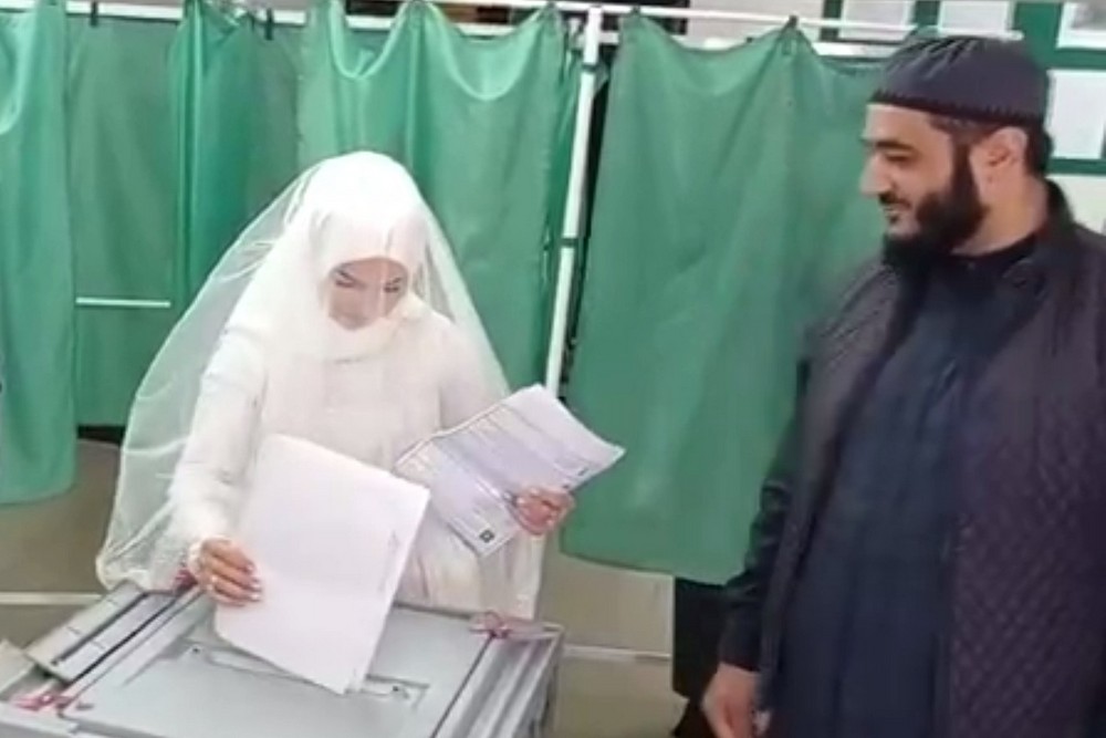 В Чеченской Республике невеста проголосовала вскоре после регистрации в загс. На избирательный участок она приехала перед последующим семейным торжеством, сообщили "РГ" в администрации Надтеречного района.