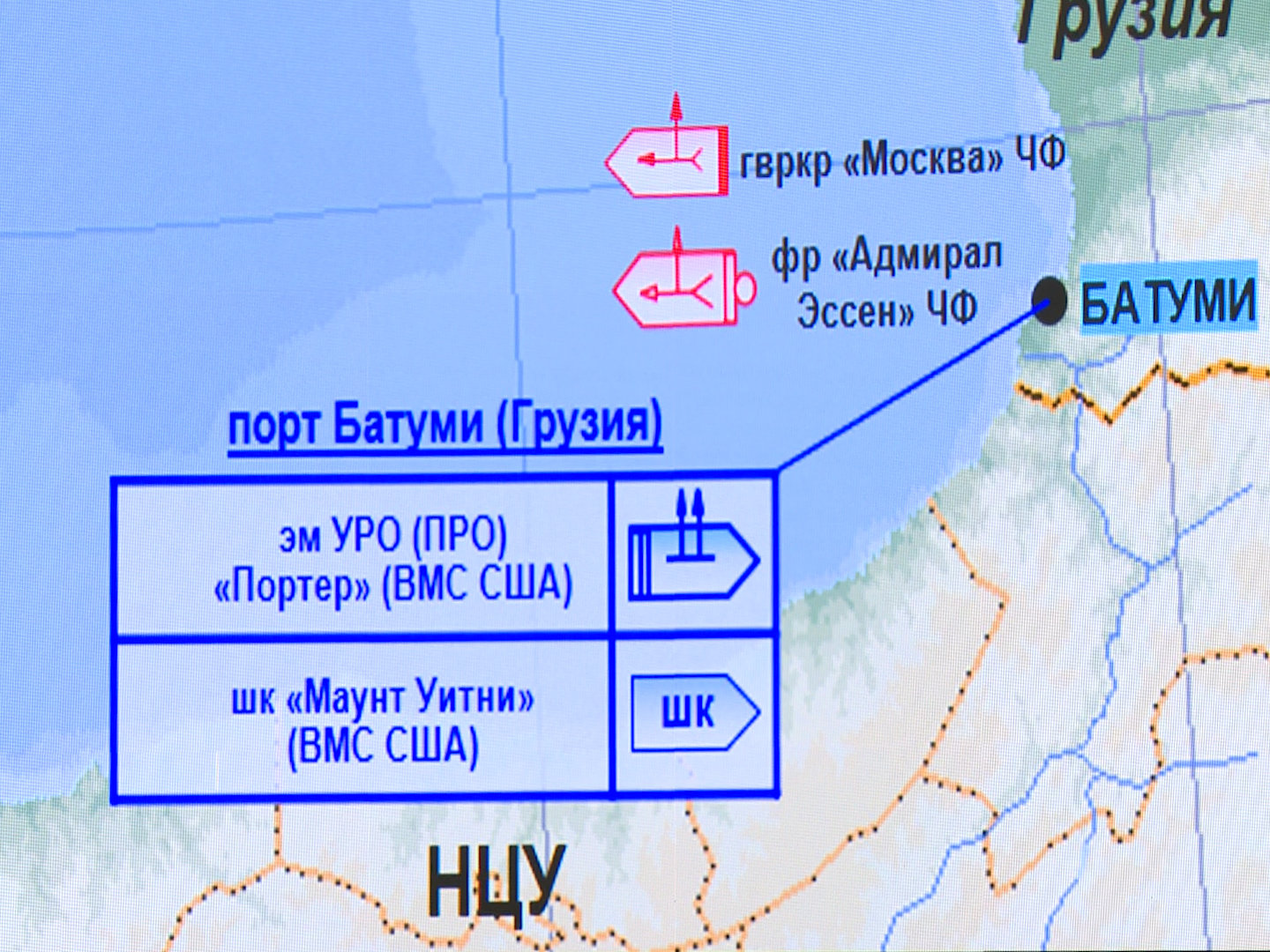 Известно, что сейчас эсминец "Porter" и штабной корабль "Mount Whitney" находятся в грузинском порту Батуми, а танкер "John Lenthall" - в юго-западной части Черного моря. "Российские Вооруженные Силы ведут непрерывное наблюдение и отслеживают обстановку", - заявил официальный представитель Минобороны РФ.