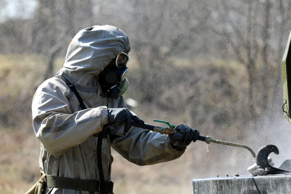 "Дезинфицирующее средство превращают в мощный газокапельный поток и распыляют с помощью специальной тепловой машины. "Горячий туман" - высокоэнергетический пар проникает в любые полости в силу своих физических характеристик, лучше покрывает обрабатываемую поверхность, чем струя жидкости или порошок", - сообщил "РГ" начальник пресс-службы ЮВО полковник Вадим Астафьев.