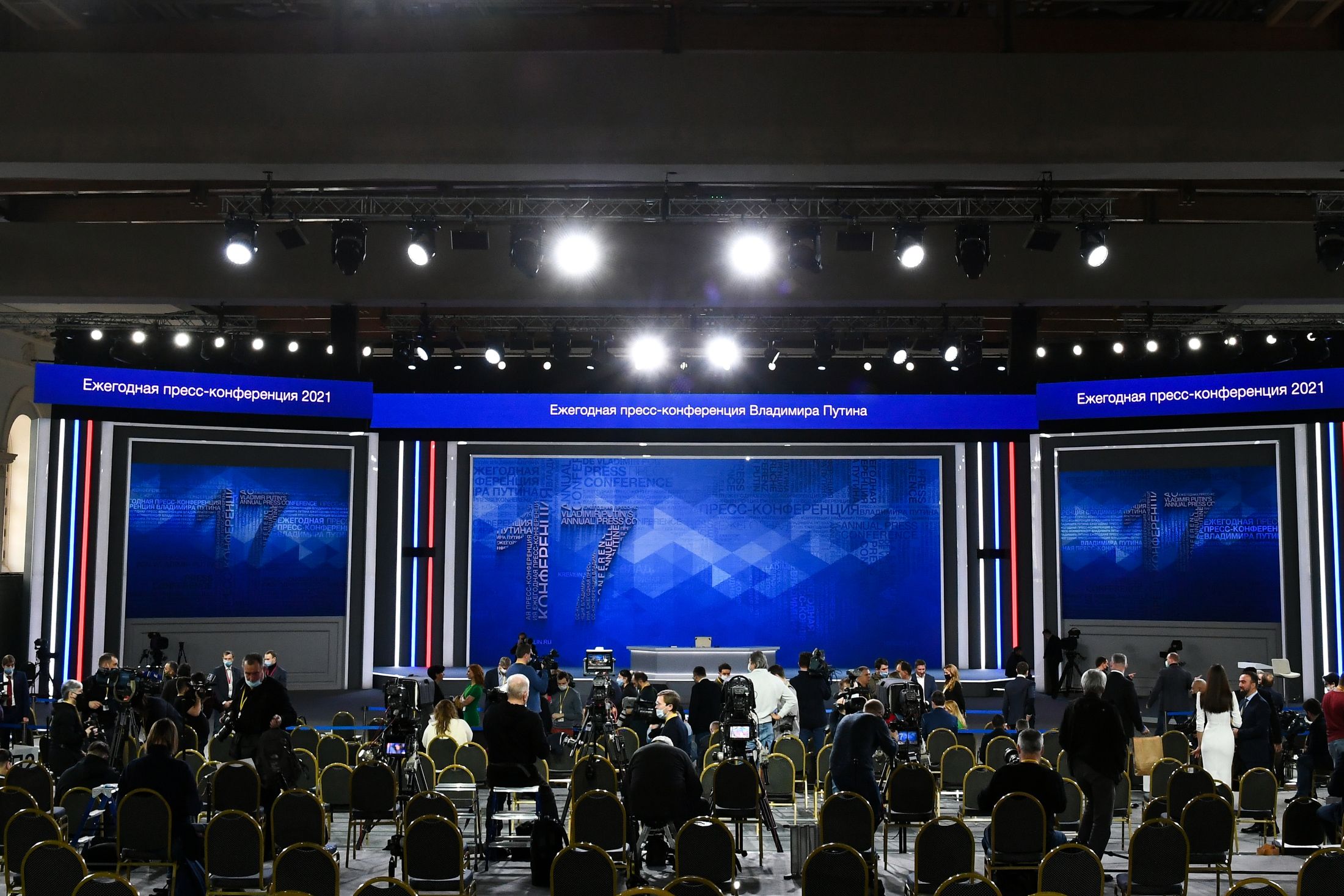 В Манеже собрались около 500 представителей СМИ кстати, эта площадка для ежегодной пресс-конференции используется впервые. Причина - санитарно-эпидемиологические требования, можно организовать социальную дистанцию, рекомендованную Роспотребнадзором. Перед началом пресс-секретарь главы государства Дмитрий Песков попросил ее соблюдать и раз в полтора-два часа менять маски. Каждому задавшему вопрос подарят в качестве сувенира набалдашник для микрофона - они тоже одноразовые. Также Песков попросил быть лаконичными в формулировках, чтобы президент смог ответить на большее число вопросов.