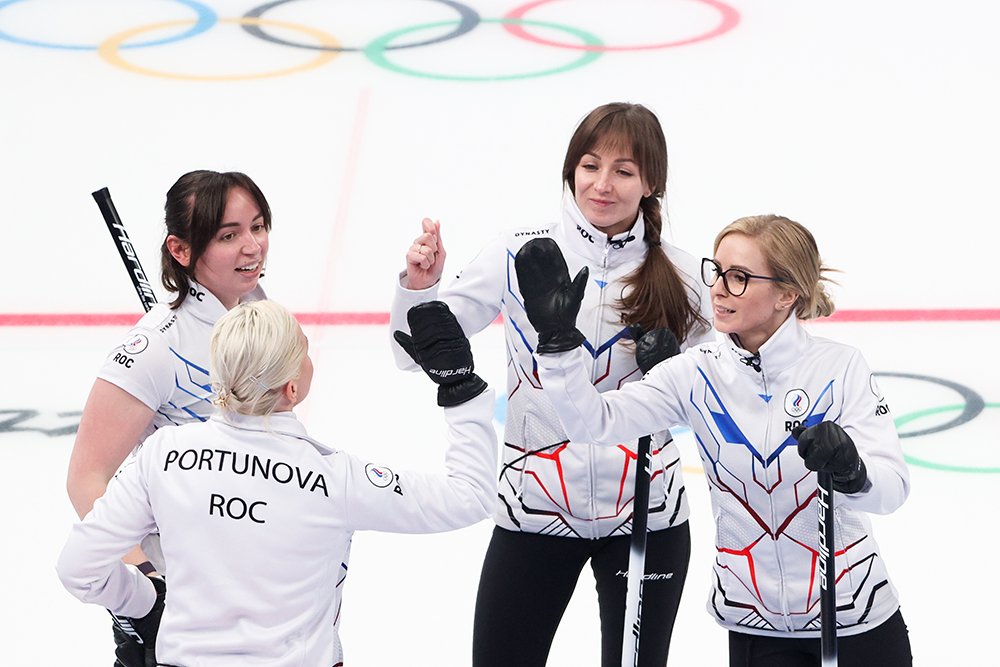 В составе нашей команды на Играх-2022 выступают Алина Ковалева (скип), Юлия Портунова, Екатерина Кузьмина и Галина Арсенькина, а также запасная Мария Комарова.