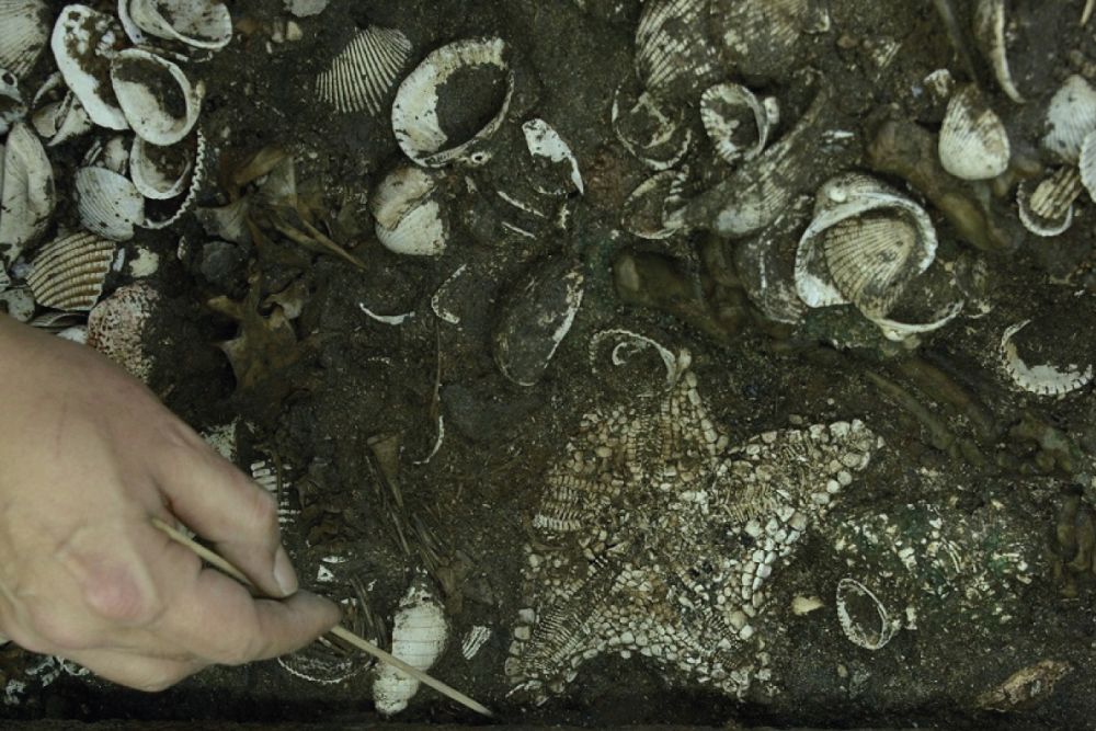В частности, археологи обнаружили крупнейшую в своем роде коллекцию морских звезд, которая насчитывает на данный момент 164 особи. Удивительно, но все морские звезды сохранили свою форму практически нетронутой, хотя с момента подношения минуло уже полтысячелетия.