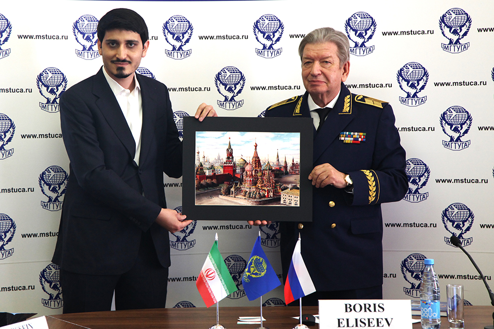 Во встрече с ректором МГТУ ГА Борисом Елисеевым и командно-руководящим составом вуза приняли участие сотрудники Посольства Ирана в Российской Федерации, проректор по учебной работе и ведущие преподаватели Технического колледжа гражданской авиации Ирана (САТС).