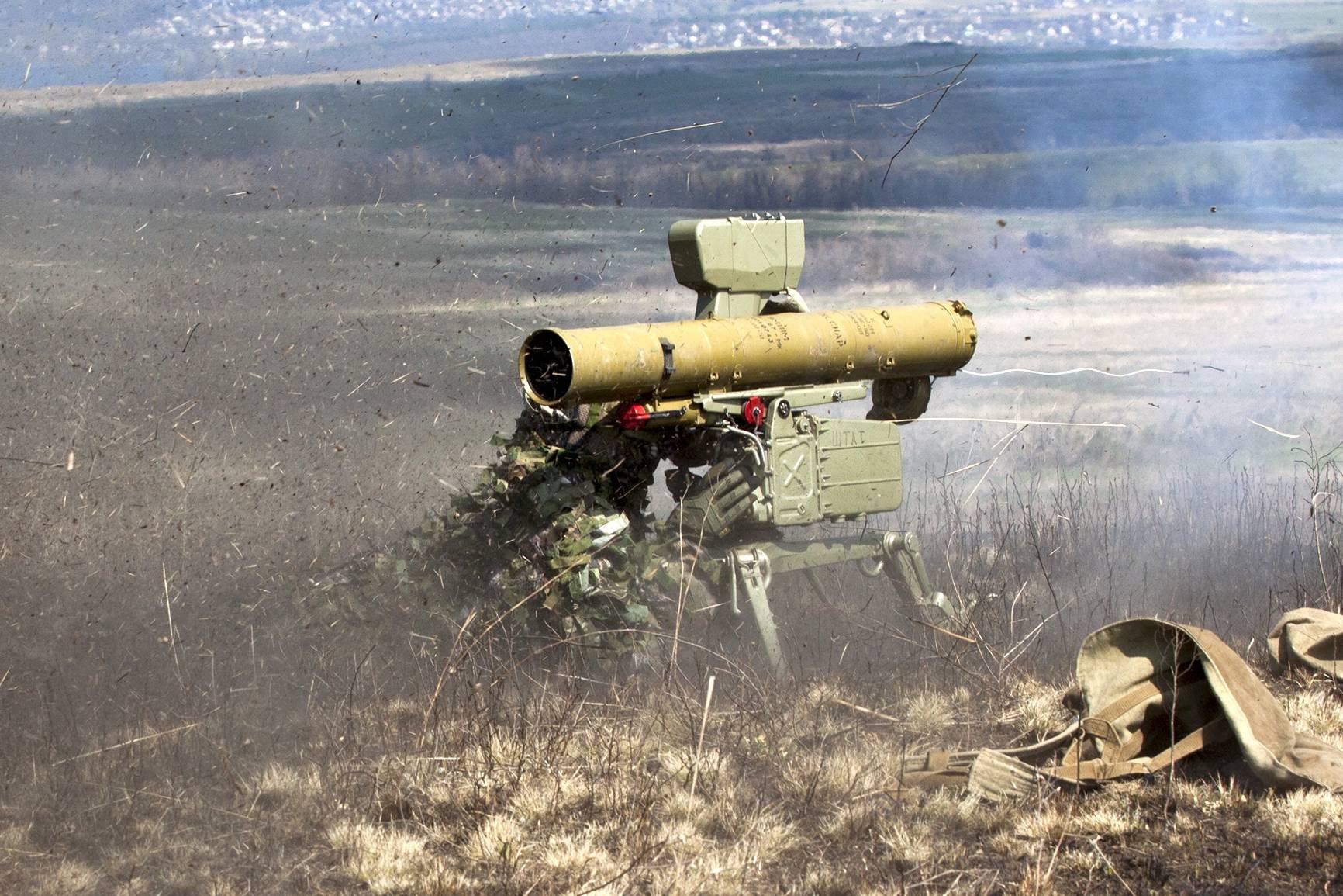Ракета летит по спиралевидной траектории, характерной для ПТУР с лазерным наведением.