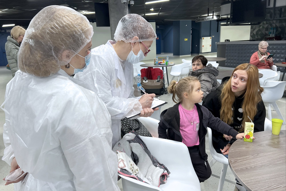 А пока три десятка человек коротают время в "Кафе31" на территории спорткомплекса. К детям подходят врачи в специальных масках и защитных комбинезонах, опрашивают о самочувствии. Ксения Чижова - специалист отдела развития и продвижения спорткомплекса - успокоила меня: "С людьми будет все в порядке". Психолог МЧС Оксана Логинова уделила мне несколько минут. Она сказала, что взрослые, конечно, испытывают стресс. А для детей это даже приключение. Везде работают телевизоры с детскими каналами. Так что детям скучать не приходится.