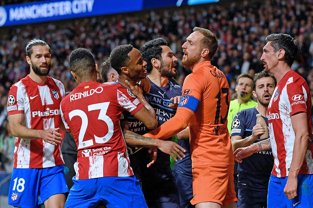 Нервы у игроков начали сдавать уже в концовке матча, после столкновения защитника хозяев Стефана Савича и Фила Фодена. На поле началась массовая драка, в результате которой арбитр показал несколько карточек и удалил футболиста "Атлетико" Фелипе. В компенсированные к основному времени 12 минут страсти кипели нешуточные: мадридцы едва не забили нужный им мяч, а их тренер Диего Симеоне в какой-то момент вышел на поле и начал иронично аплодировать гостям за то, что они тянут время.