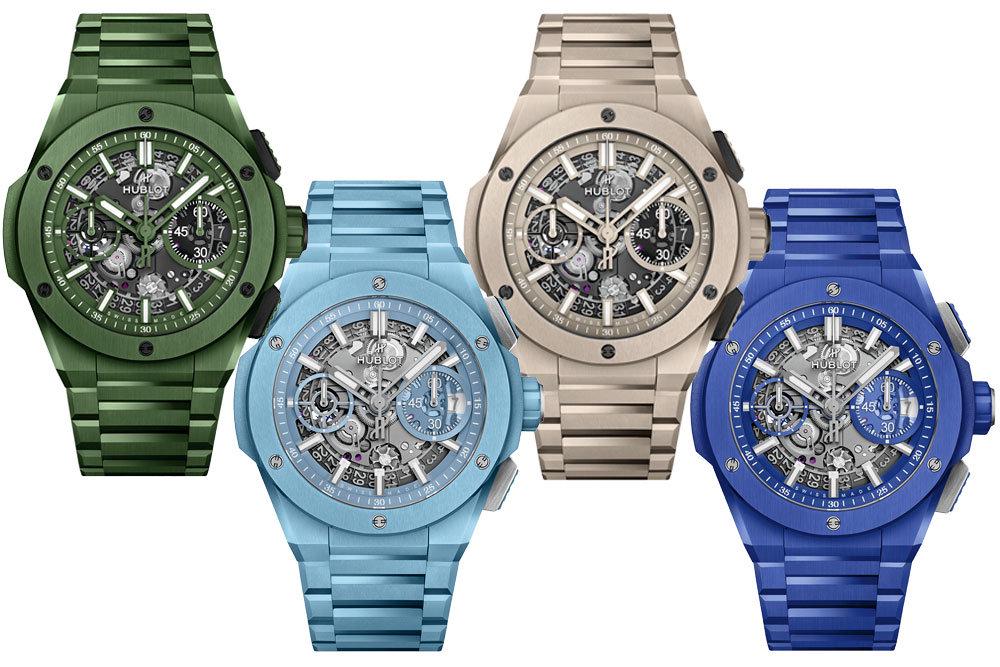 Коллекция Big Bang Integral Ceramic отправляет любителей часов в красочное путешествие по миру. Монолитная конструкция (браслет, интегрированный в корпус), мономатериал (керамика) и монохром: четыре новых цветовых решения, отсылающих к оттенкам живой природы - синий индиго, лазурно-голубой, песочно-бежевый и цвет зеленых джунглей.