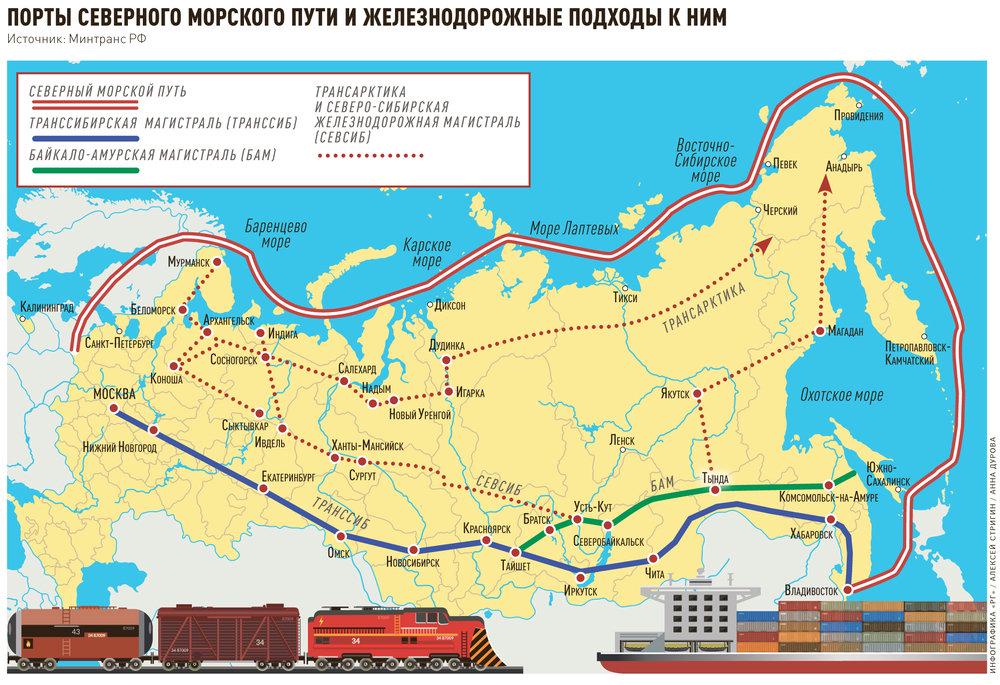 Для этого предстоит решить комплекс задач, в том числе и ключевой вопрос - синхронизацию работы тех предприятий и инвестиционных проектов, которые формируют грузовую базу СМП, и расширить его мощности. Помимо этого, по всей трассе Севморпути должны быть созданы базы транспортного-логистического обеспечения перевозок в промежуточных портах - Мурманске, Тикси, Певеке и других, более мелких.
