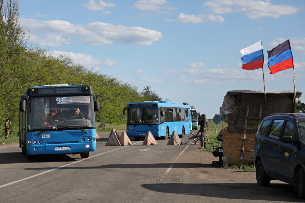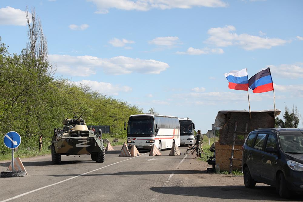 Неподалеку от участка трассы, через который обычно гражданские машины не пропускают, сворачиваем на Бугас. А в Докучаевске встречаем еще одну колонну, которая движется уже в сторону Мариуполя. Ее тоже сопровождает военная техника. Прижимаемся к обочине, пропускаем. На этот раз в колонне - несколько автобусов малой вместимости с красными крестами и надписью: "Груз 300". Пока эти автобусы пустые. Но вполне возможно, что они выдвинулись к "Азовстали", чтобы забрать остающихся на заводе раненых.