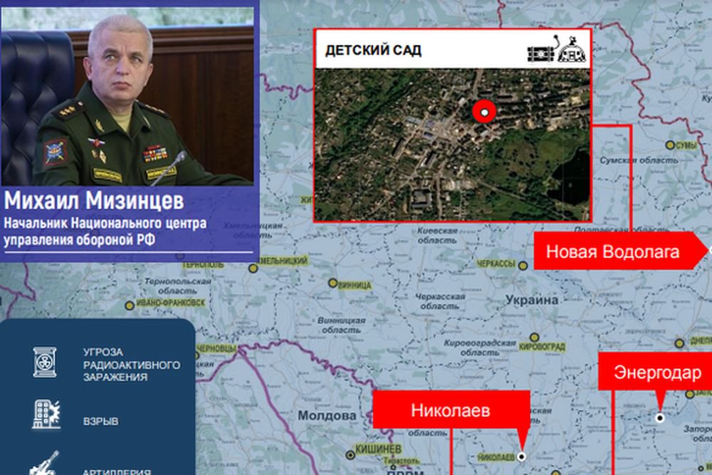 Начальник Национального центра управления обороной РФ генерал-полковник Михаил Мизинцев сообщил, что по достоверно установленным данным, командование ВСУ силами 72-го центра информационно-психологических операций готовит очередную масштабную провокацию с гибелью мирного населения якобы из-за неизбирательных ударов российских Вооруженных сил.