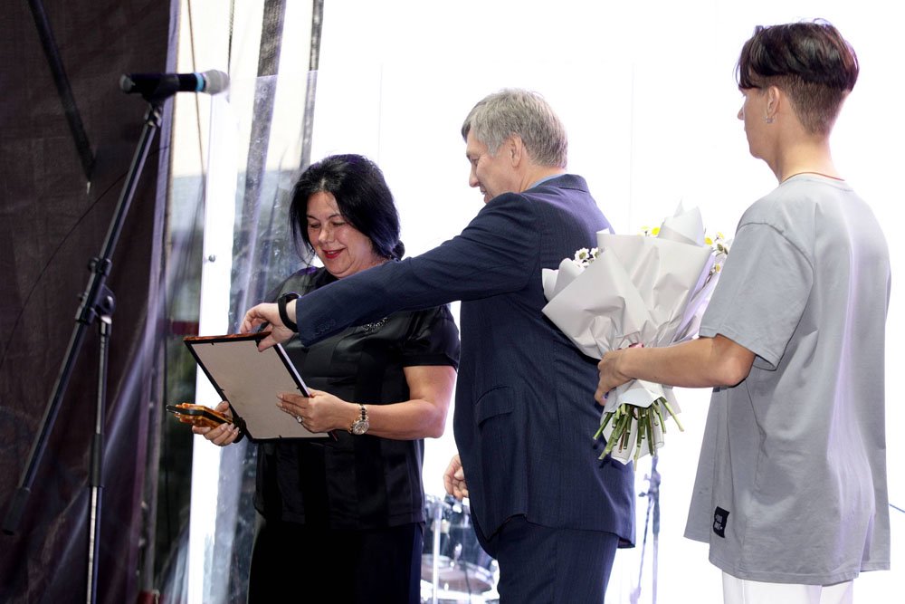 Он отметил, что одним из знаковых военно-патриотических кинопроектов для страны стал фильм "Небо", созданный кинокомпанией "Трииикс Медиа" и вручил диплом за художественное воплощение патриотизма в кино специально приглашенной на праздник генеральному продюсеру компании Инессе Юрченко.