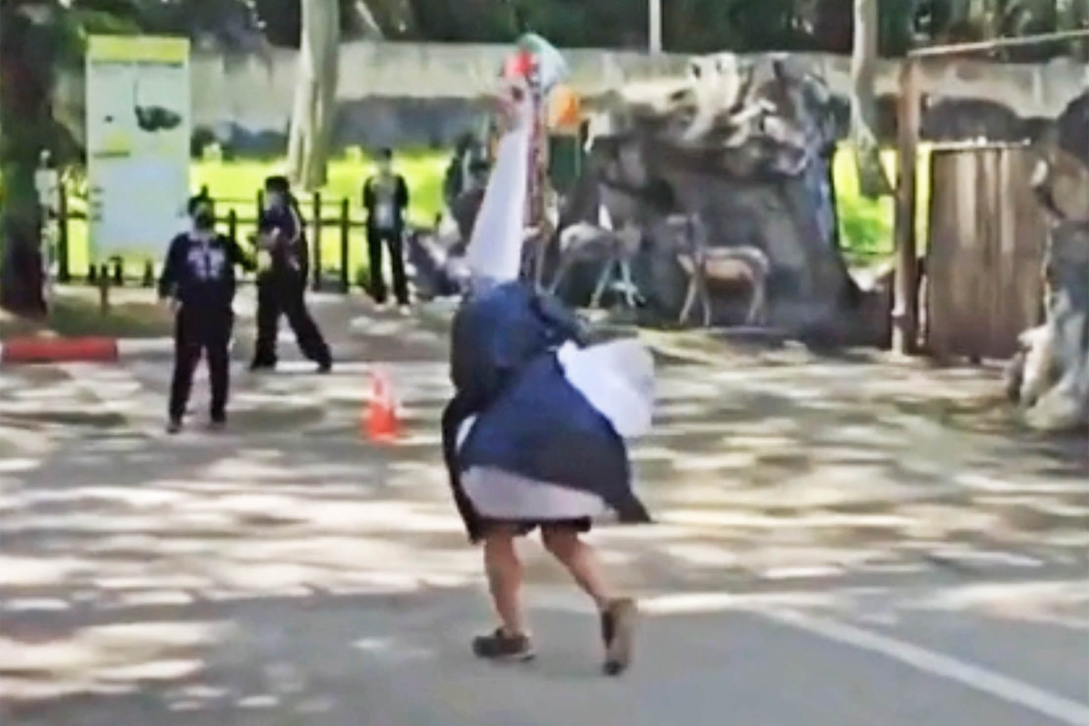 В таиландском зоопарке решили отрепетировать побег страуса. Роль беглеца досталась переодетому в костюм сотруднику. Коллеги с сачками и сетками гонялись за ним. "Страус" умело уворачивался от ловушек, но в итоге сдался.