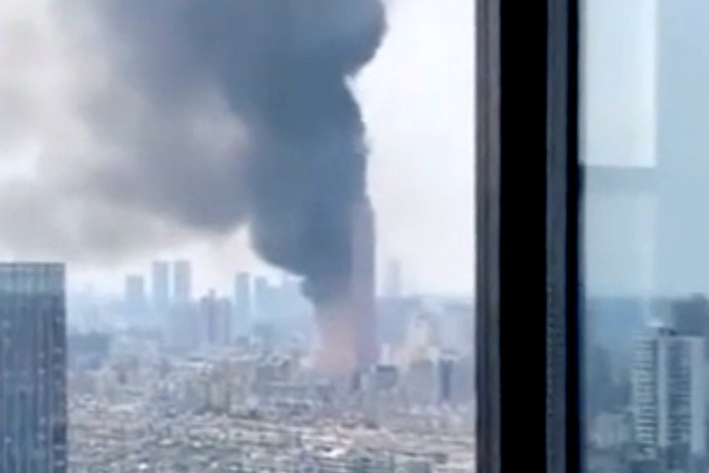 В Китае загорелось 200-метровое здание China Telecom