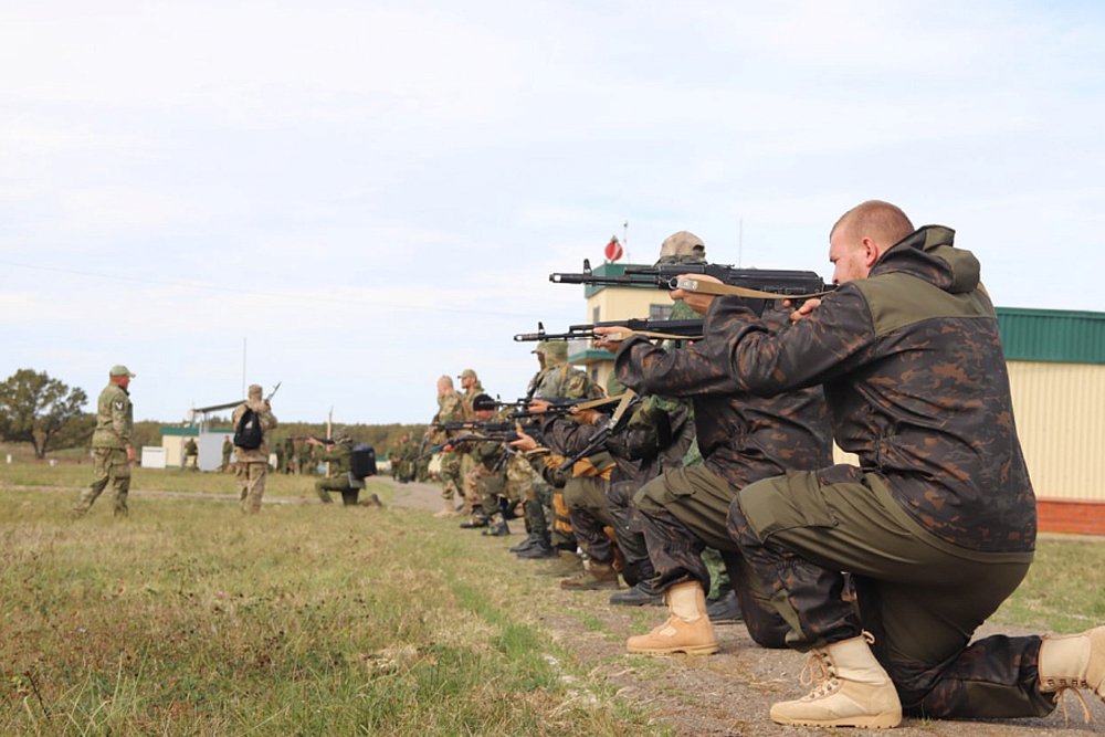 На Кубани продолжается сбор и обучение желающих участвовать в специальной военной операции в составе добровольческих казачьих отрядов.