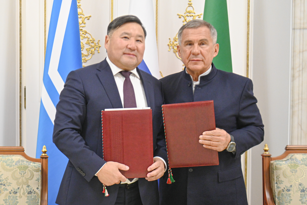 В Казанском Кремле состоялось подписание соглашения между правительствами Республики Тыва и Республики Татарстан о сотрудничестве в экономической, культурной, социальной и иных сферах. Предыдущее соглашение между регионами было подписано в 2016 году. Обновленный документ призван способствовать расширению взаимовыгодных связей.