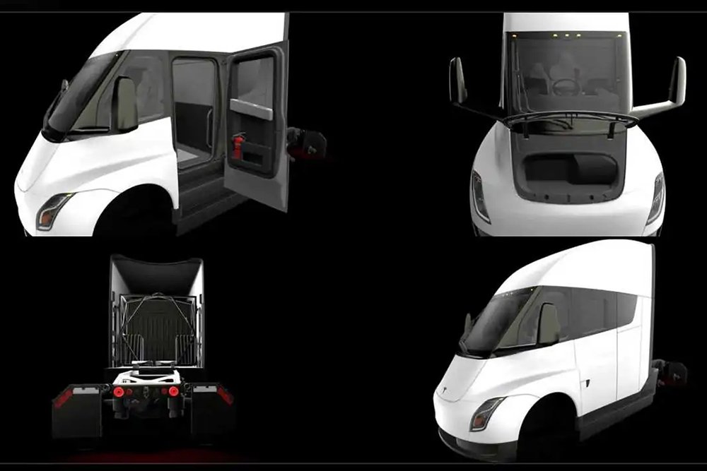 Особенностями электрического полуприцепа станут багажник в передней части, большие зеркала на длинных "ножках" и дверь, открывающаяся против хода движения. У прототипа вместо наружных зеркал были установлены камеры, но в серийном варианте они невозможны из-за особенностей законодательства некоторых штатов США, а вот оригинальный большой "дворник" сохранён.