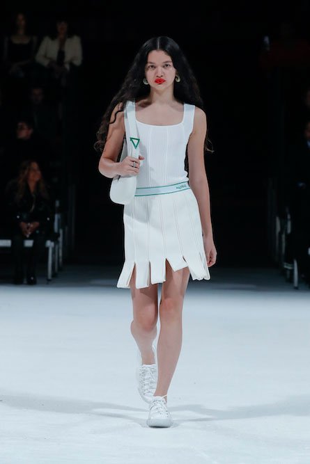 Крошечные футболки, свитшоты, открывающие одно плечо (как правило, очень худощавое), мини-юбки, массивные кроссовки, туфли на платформе – Y2K основан на графических контрастах толстых и тонких линий.