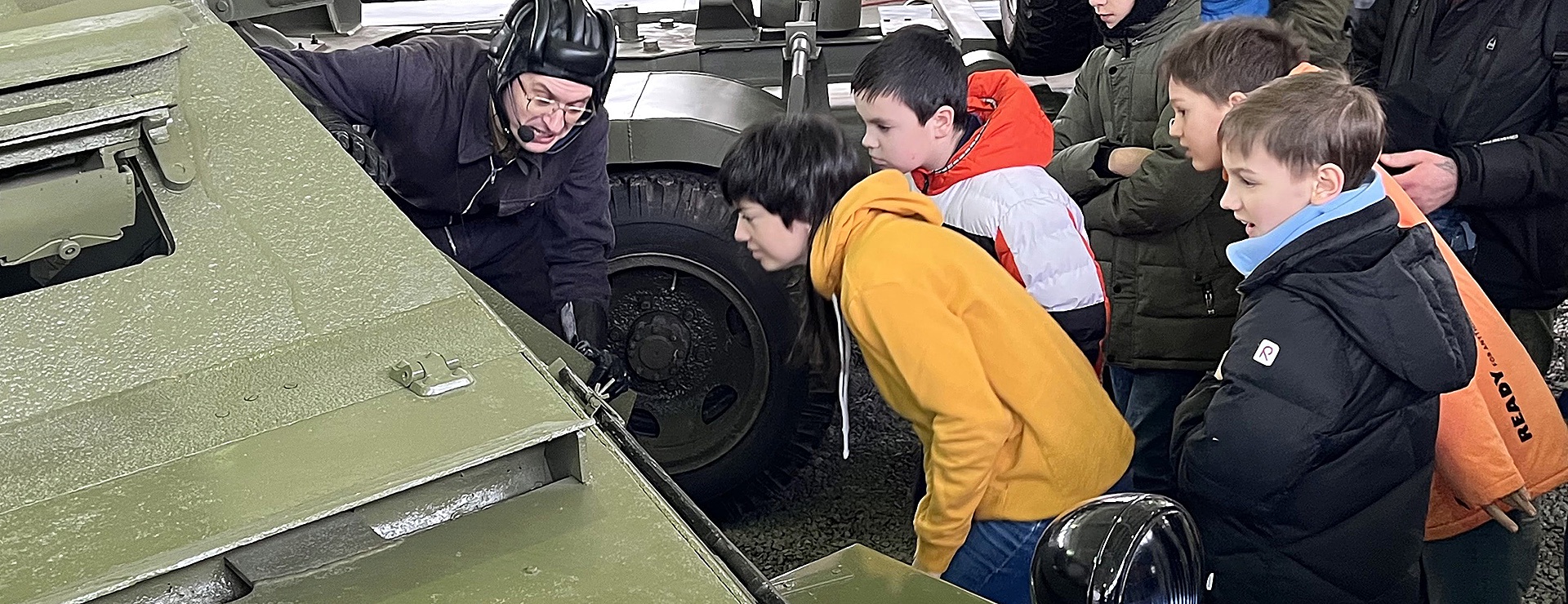 Я с непокрытой головой отважно пытаюсь втиснуться в узкую дверцу разведывательной бронемашины БА-64Б. Процесс идет с переменным успехом, и вообще, задача не для упитанных. Со вздохом облегчения возвращаюсь (ура, передышка!), получаю из рук Юрия танковый шлемофон. Гениально простое изобретение, которое носят советские танкисты с 1936 года и до наших дней.