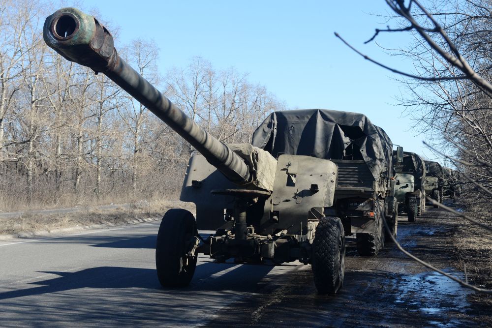 Гаубице явно нужно было куда-то поспеть быстрее и она обогнала автопоезд с БМП.
