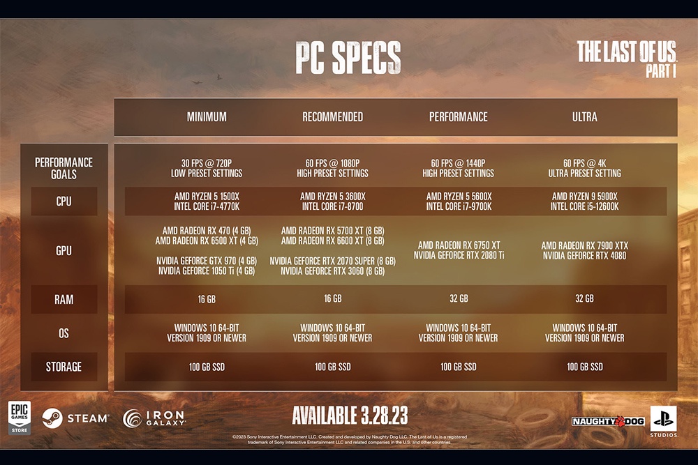 Релиз ПК-версии The Last of Us: Part I в онлайн-магазинах Steam и Epic Games Store запланирован на 28 марта текущего года.
