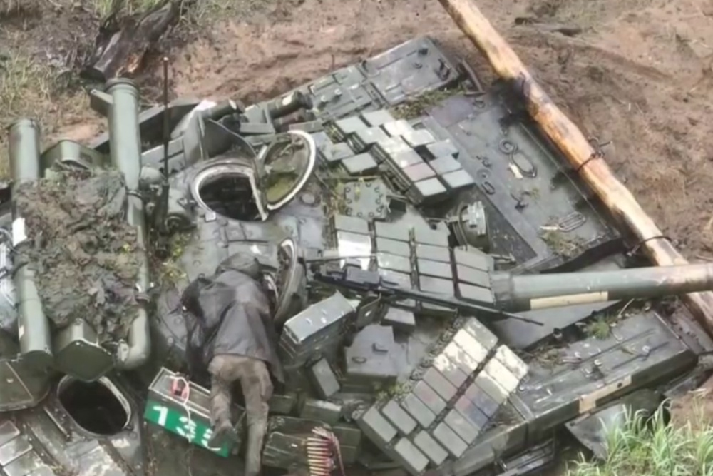 Как рассказал журналист, танк был брошен противником у своих позиций. Сапер Ивановской дивизии героически в одиночку пробрался через минные поля и подорвал его на территории врага. Он заложил в Т-64БВ мину и применил накладной заряд.