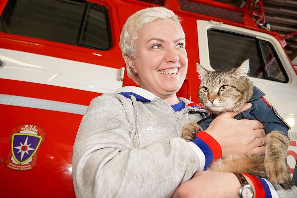 Серый полосатый упитанный котяра был настоящей звездой интернета и телевидения. Два года назад в пожарную часть № 135 его принес водитель, у ребенка которого выявилась аллергия на шерсть. Хвостатый сразу стал любимцем спасателей. Ухаживали за ним два сотрудника: начальник караула Виталий Домрачев кормил и купал, а диспетчер Ольга Зиновьева шила одежду. Да, у котика был солидный гардероб из штатской униформы и гражданских нарядов на все сезоны, всех цветов. Мохнатому пожарному даже смастерили фуражку на резинке.