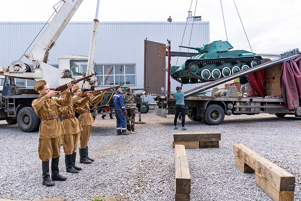 У музея "Битва за Ленинград" Т-70 встречали юные воспитанники патриотических клубов Ленинградской области и много местных жителей. По случаю прибытия танка был дан оружейный салют.