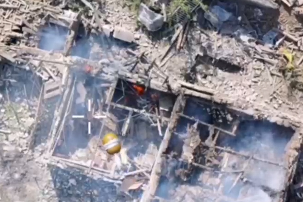 Видео опубликовали в одном из Telegram-каналов. На нем заметно, что боевики заняли один из разрушенных частных домов. Артиллерия уничтожила часть бойцов ВСУ. Оставшийся в живых попытался укрыться, спрятал оружие и накрылся одеялом и каким-то хламом. Но дрон не оставил ему шансов, сбросив гранату РГД-5.