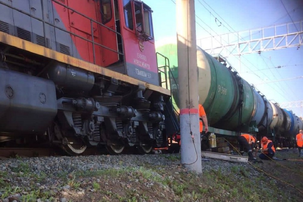 Как сообщили в Западно-Сибирской транспортной прокуратуре, инцидент произошел утром 6 июля на станции Сокур в Мошковском районе. При проведении маневровых работ тепловоз и один вагон c бензином сошли с путей. Опрокидывания не произошло, уточнили в ведомстве. Также происшествие не повлияло на расписание движения поездов.