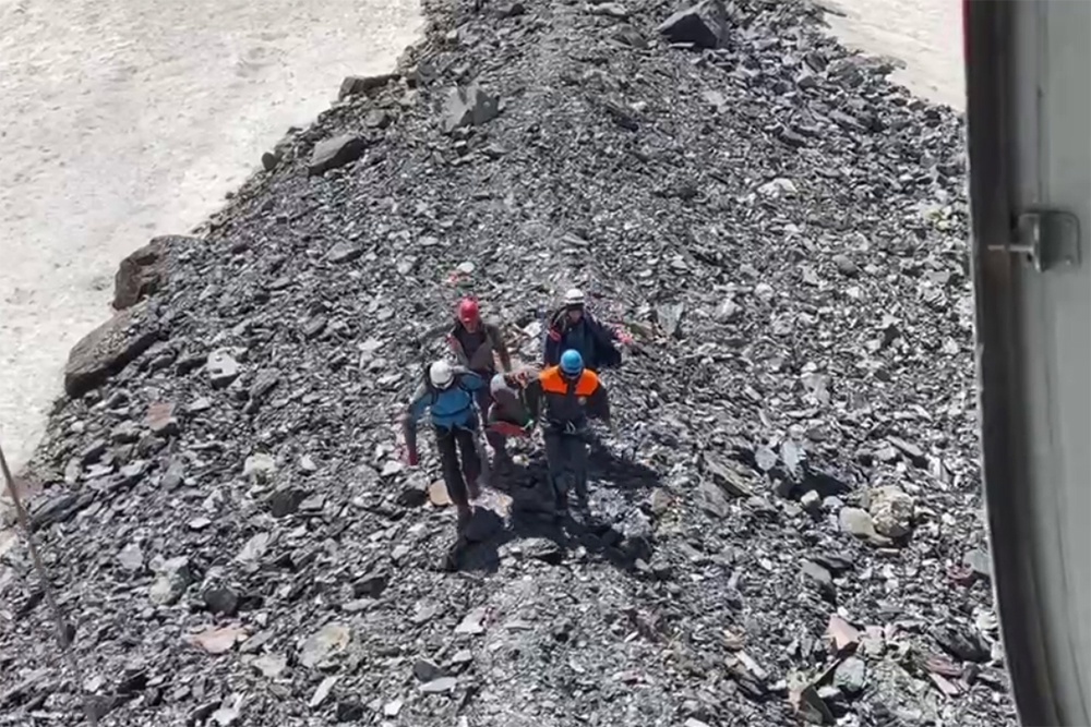 - Первой на борт подняли девушку, получившую наиболее серьезные травмы, Она находилась в спасательской акье (спасательные носилки). Затем на борт подняли еще двух пострадавших, а также участницу альпгруппы, которая пожаловалась на недомогание. Всего 4 человека: трех женщин и одного мужчину. За каждым из них с борта вертолета спускался спасатель. Он же сопровождал их при подъеме наверх, - рассказал начальник Северо-осетинского поисково-спасательного отряда МЧС России Арсен Чегаев.