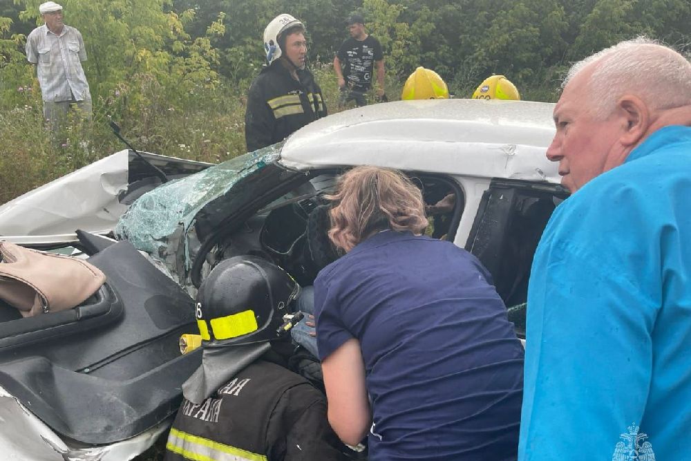В результате грузовой электропоезд протаранил автомобиль. Женщину с травмами госпитализировали в больницу. Спасателям пришлось деблокировать ее.
