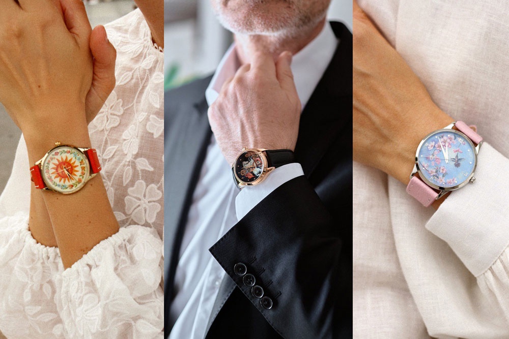 - Можно абсолютно все. У нас были самые разные заказы: от шаржа любимой женщины до самых разных хобби. Все очень просто. Приносите нам идею - это может быть картинка, набросок или полноценный эскиз. Мы берем ее в работу, адаптируем для циферблата и возвращаемся к вам с макетом. Если все нравится, то макет уходит к нашим художникам. Само собой, мы делаем персональные ремешки, кожа расписывается акрилом. Готовы также создать лаковую коробку для хранения часов, где можно повторить рисунок, который написан на циферблате, или сделать для нее отдельный эскиз.