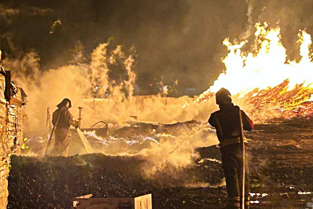 Склад древесных пеллет под Красноярском загорелся в среду вечером. Огонь распространился по открытой территории и зданию склада на площадь 2200 квадратных метров.