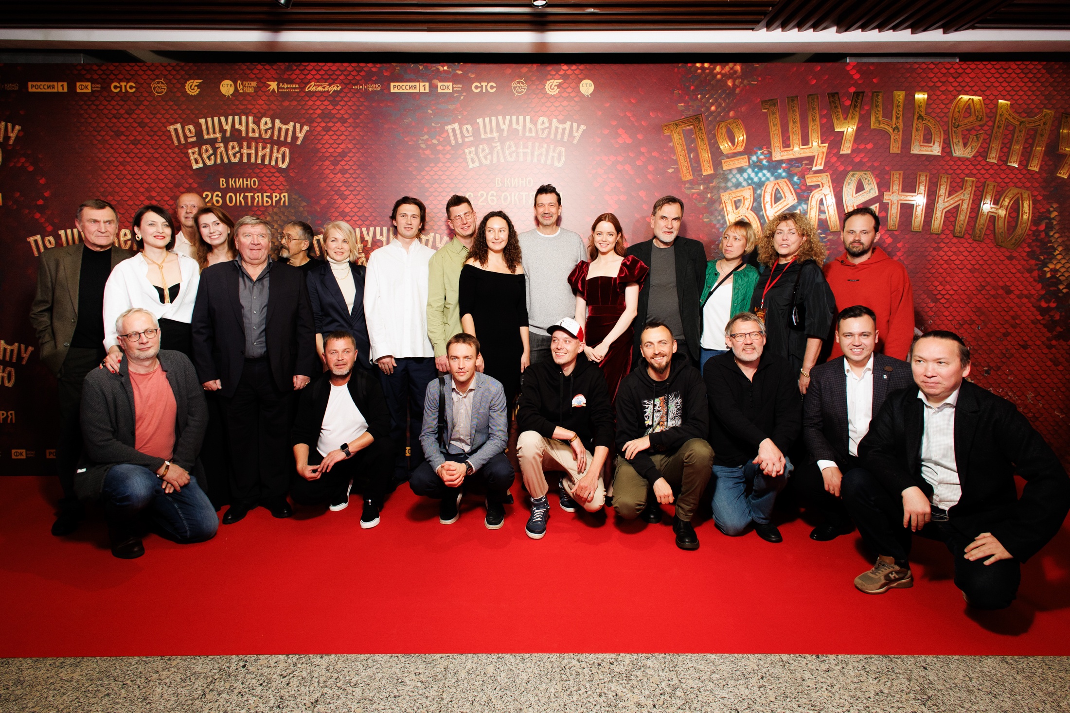 "По щучьему велению" - это полнометражный игровой фильм, снятый по мотивам русских сказок, при работе над которым использовалась технология совмещения CGI, задействованная для создания анимированных персонажей. Производство вела кинокомпания СТВ при поддержке Фонда кино. В съемках киноленты также принимала участие команда, работавшая над одним из самых кассовых российских релизов для семейной аудитории - сказочным блокбастером "Конек-горбунок".