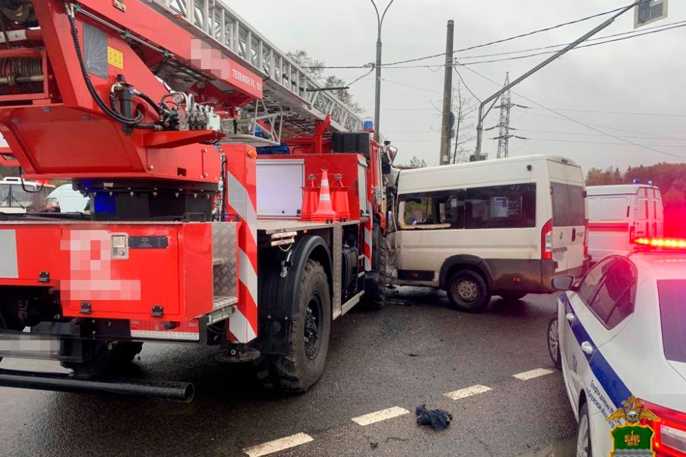 Авария произошла в 14:16 на 106-м километре трассы М-3. Столкнулись спецавтомобиль "КамАЗ" и микроавтобус Fiat Ducato", - сообщили в УМВД по Калужской области.