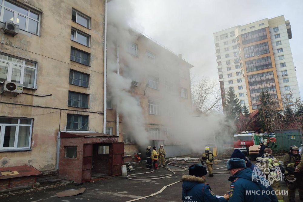 Возгорание произошло в подвале, горели бумага, обшивка кабинета на площади 10 квадратных метров. В подвале было сильное задымление. Пострадавших нет, пожар был локализован за час с небольшим - сигнал о возгорании поступил пожарным в 11:07, огонь локализовали в 12:17.