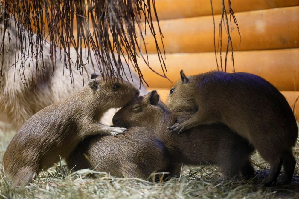 В Ленинградском зоопарке впервые показали, как растут четыре детеныша капибар Кайсы и Ермака. За ними можно понаблюдать в крытом вольере павильона "Тропический дом".